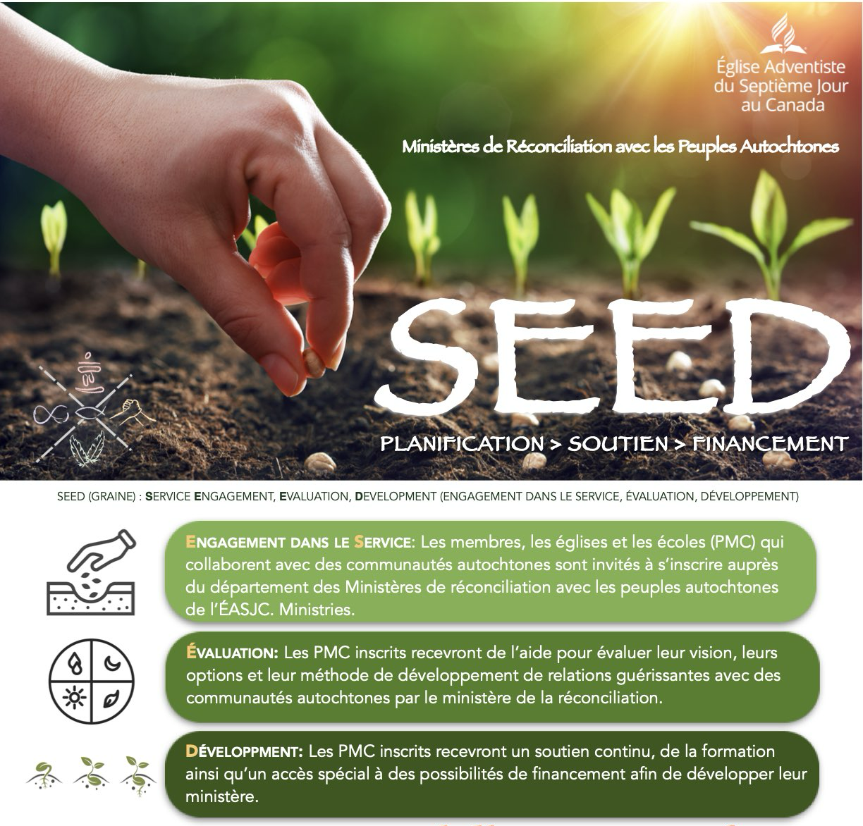 - La planification du programme SEED, le soutien et le financement des partenaires ministériels constituants (membres, églises, écoles, fédérations)